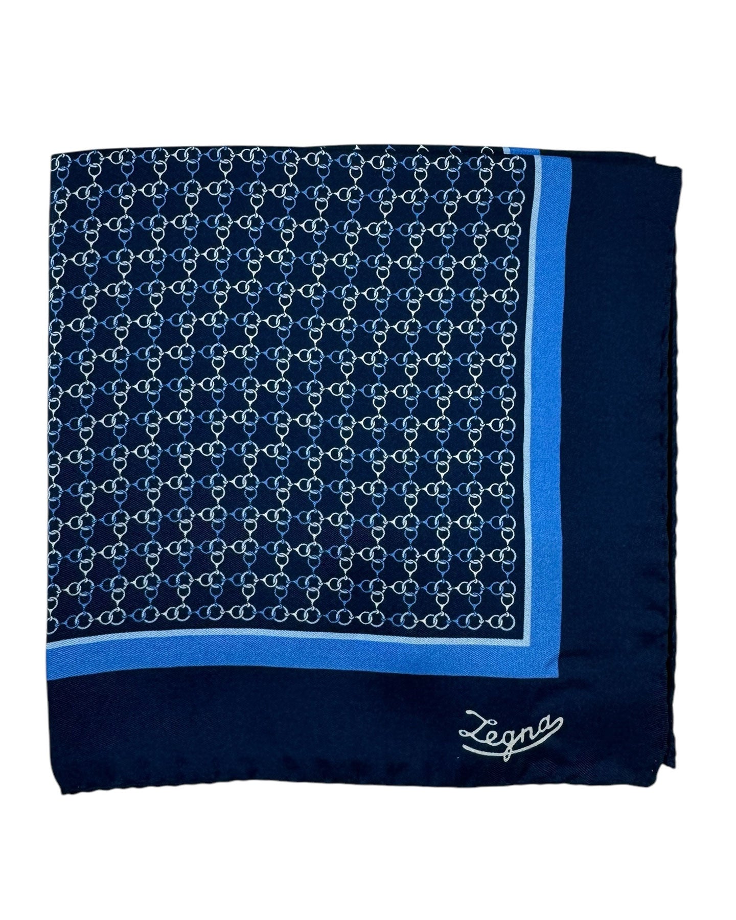 - SALE - Authentic Ermenegildo Zegna pocket square with dark blue design, silk, hand stitched borders, made in Italy. Luxury designer Zegna pocket squares for men.