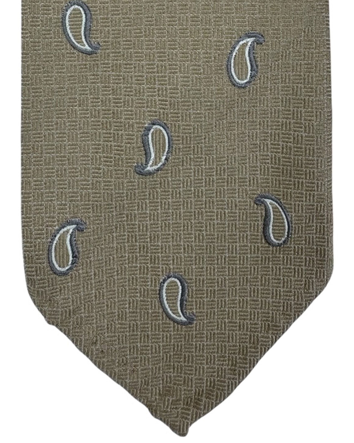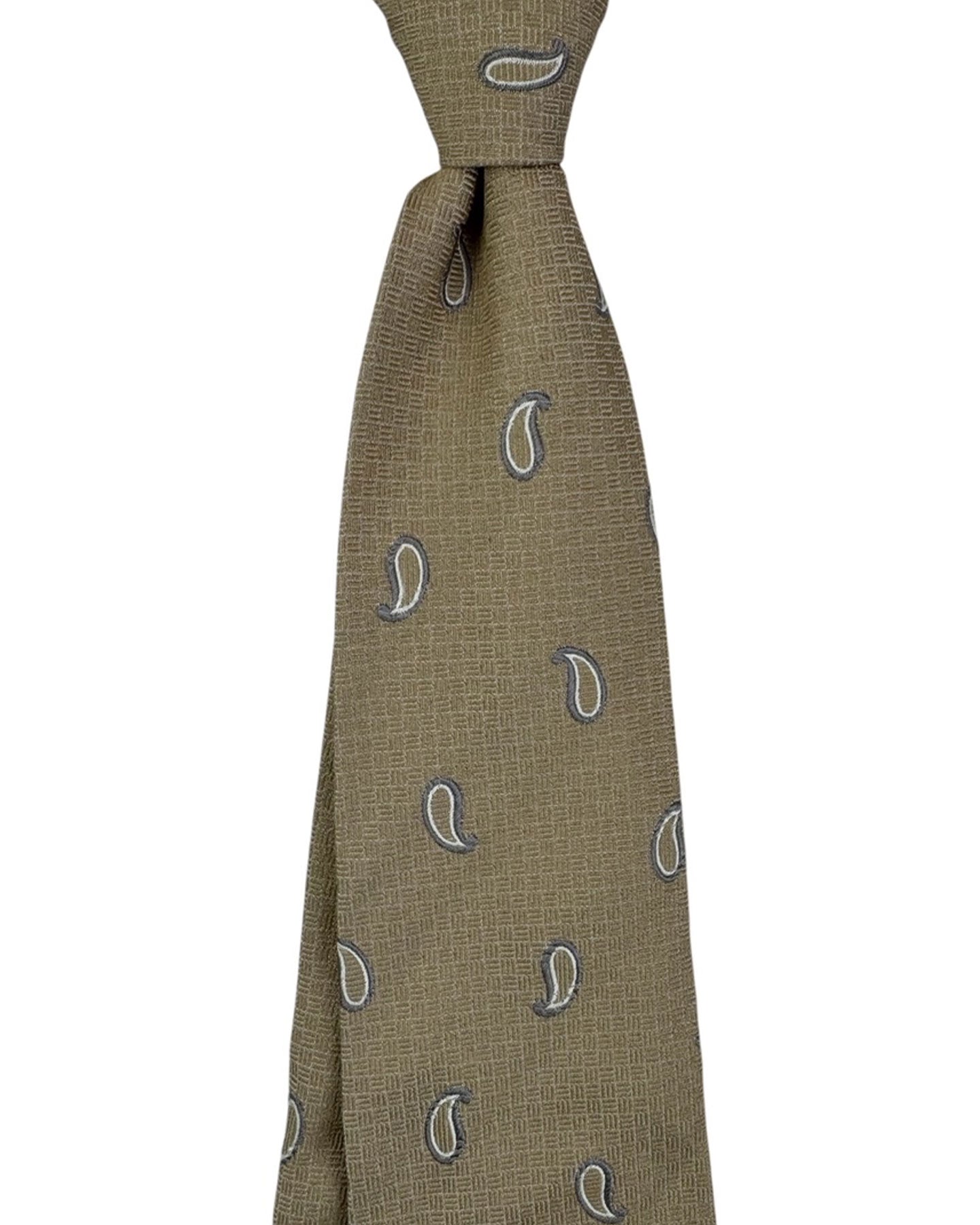 Authentic Luigi Borrelli tie, unlined, taupe gray paisley, jacquard silk, hand made in Italy. Genuine Luigi Borrelli men collection online. Sartorial quality Italian ties at outlet prices.