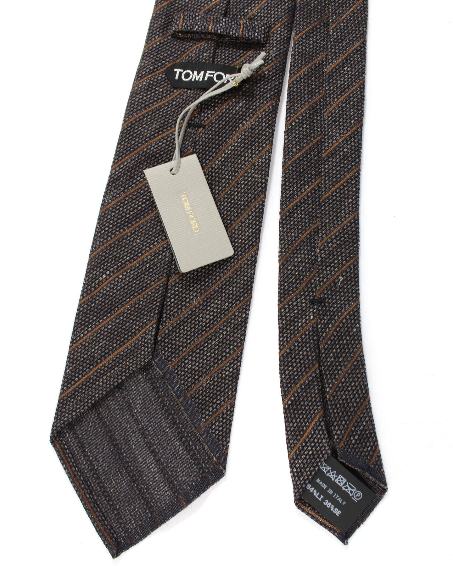 Men collection: Authentic Tom Ford sevenfold tie, charcoal / brown stripes, wide necktie, hand made in Italy. Shop the luxury Tom Ford collection men's neckties and dress shirts at outlet prices.